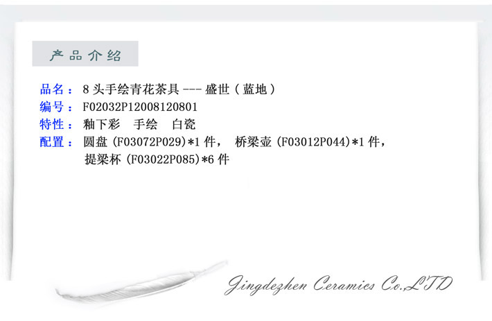 8頭手繪青花茶具盛世藍地