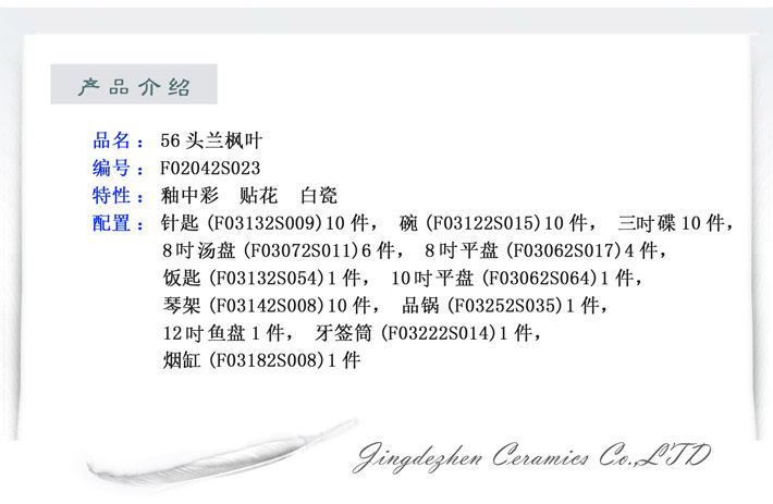 56頭中餐具蘭楓葉