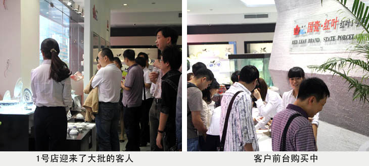 吳副總說:景德鎮陶瓷股份有限公司生產的紅葉陶瓷,是當代國瓷、官窯的代表,而景瀚陶瓷廣場是景德鎮陶瓷商貿廣場中一顆璀璨的明珠,紅葉與景瀚陶瓷廣場可以說是相見恨晚。景瀚擁有黃金地理位置、良好的購物環境、完善的管理服務體系,紅葉1號店落戶此處,彼此是相得益彰。我們相信,1號店只是紅葉陶瓷旗艦店的開始,未來三年內,2、3號店乃至更多的旗艦店將落戶全國一線城市。